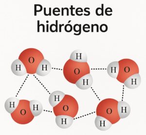 Pero su forma angular crea una polaridad en ella. Gracias a esto, puede formar enlaces sutiles llamados puentes de hidrógeno, que son temporales. Algo así como abrazos entre moléculas. Como si al agua líquida fuera una tejedora donde hay agrupación, relación y movimiento